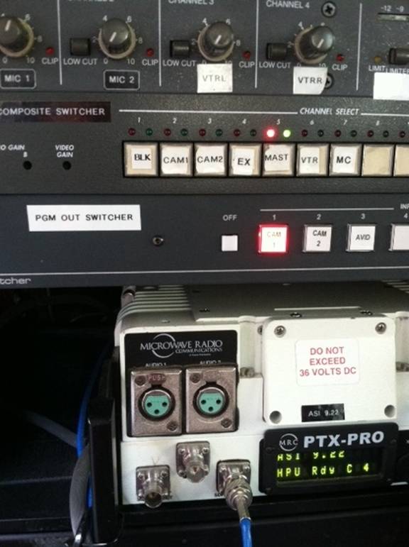 Make sure the PGM OUT HD switcher is pushed for CAM 1 as shown.
